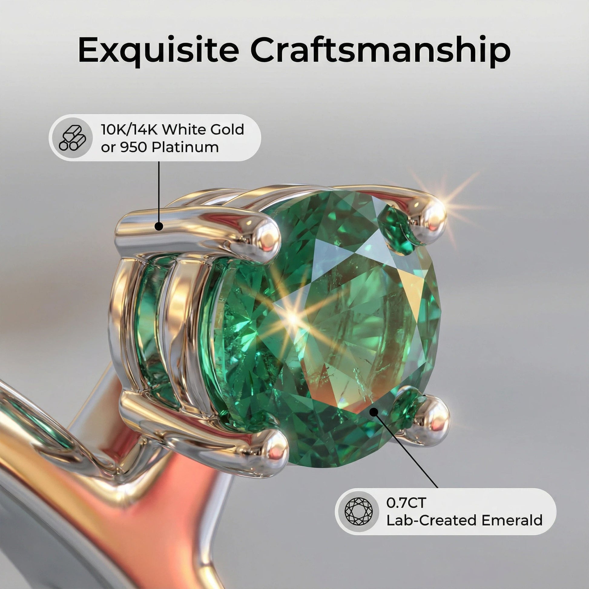 Vivid Lab-Created Emeralds: Showcases 11 authentic, round 3mm lab-created emeralds totaling 1 carat, renowned for their deep, captivating green color and remarkable clarity.