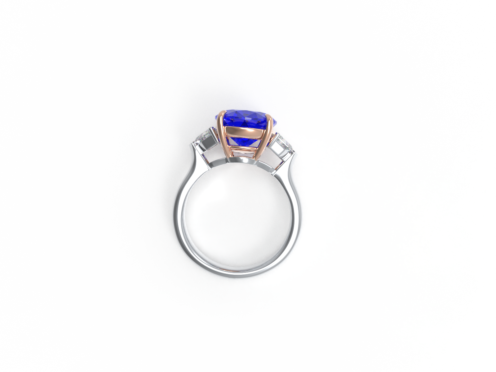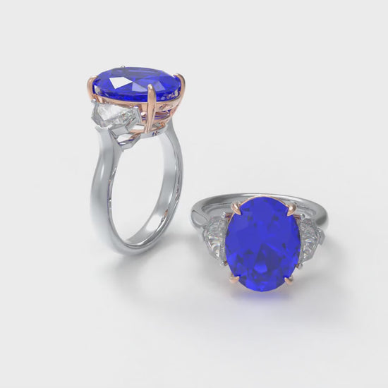 Handmade 3 - Diamond Ring with 2.8CT/4CT Lab - Grown Blue Main Diamond, 9K/14K/18K White Gold, Ideal for Proposal, Wedding, Anniversary