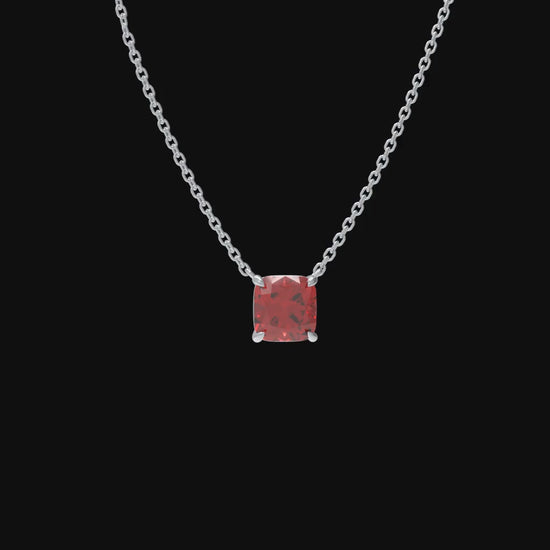 Handmade 925 Sterling Silver Cushion Cut Lab-Grown Ruby Pendant, Luxury Jewelry Gift for Her