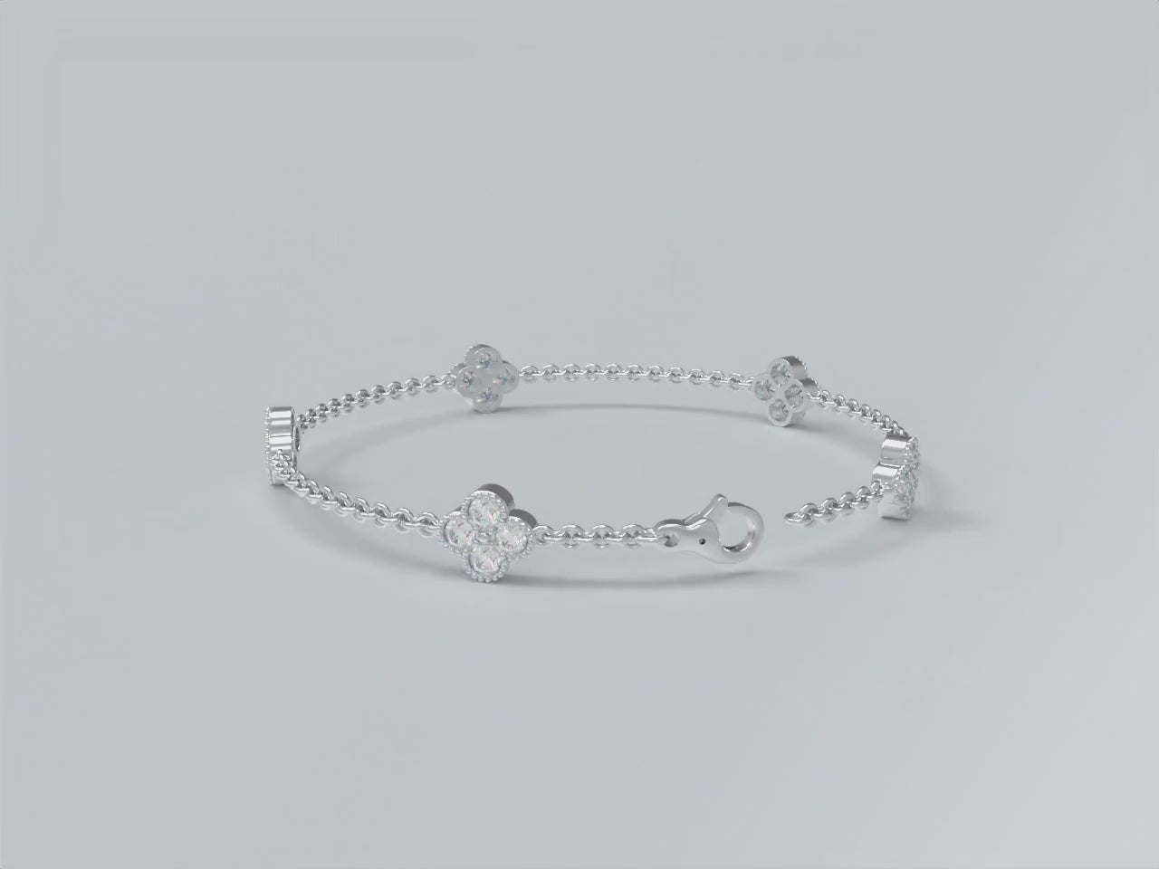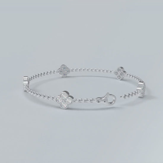 Handmade Four - Leaf Clover Bracelet with Lab - Grown Diamonds (VVS1 - VVS2 Clarity) in 9K/14K/18K White Gold