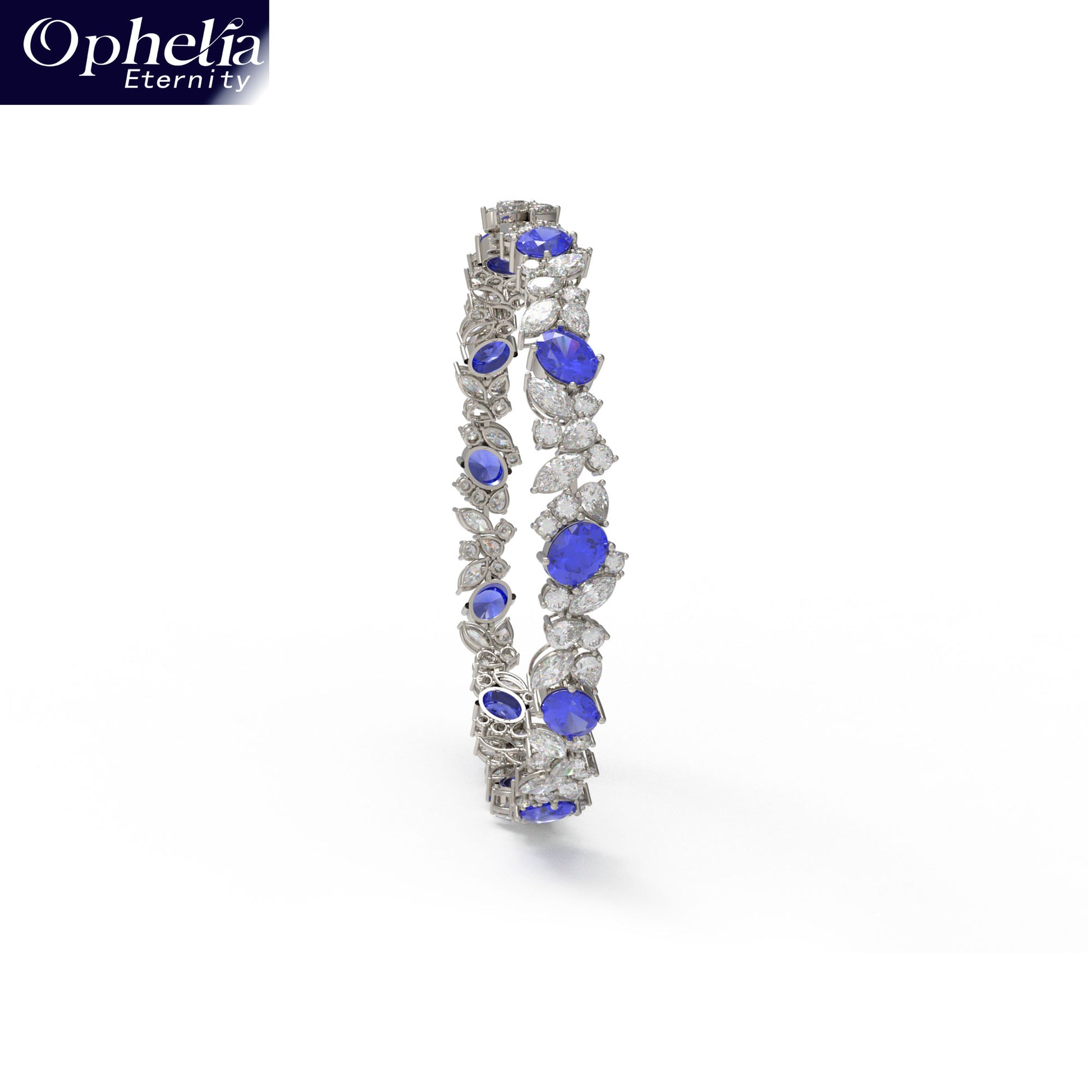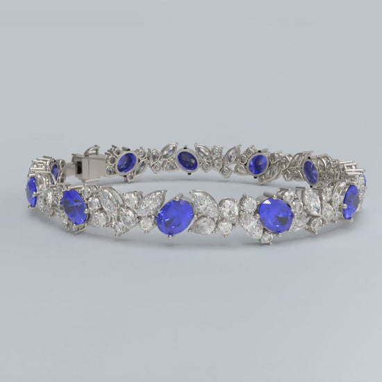 Handmade Gorgeous Lab - Grown Sapphire & Diamond Bracelet with Platinum, Total Weight 10CT/12CT/15CT