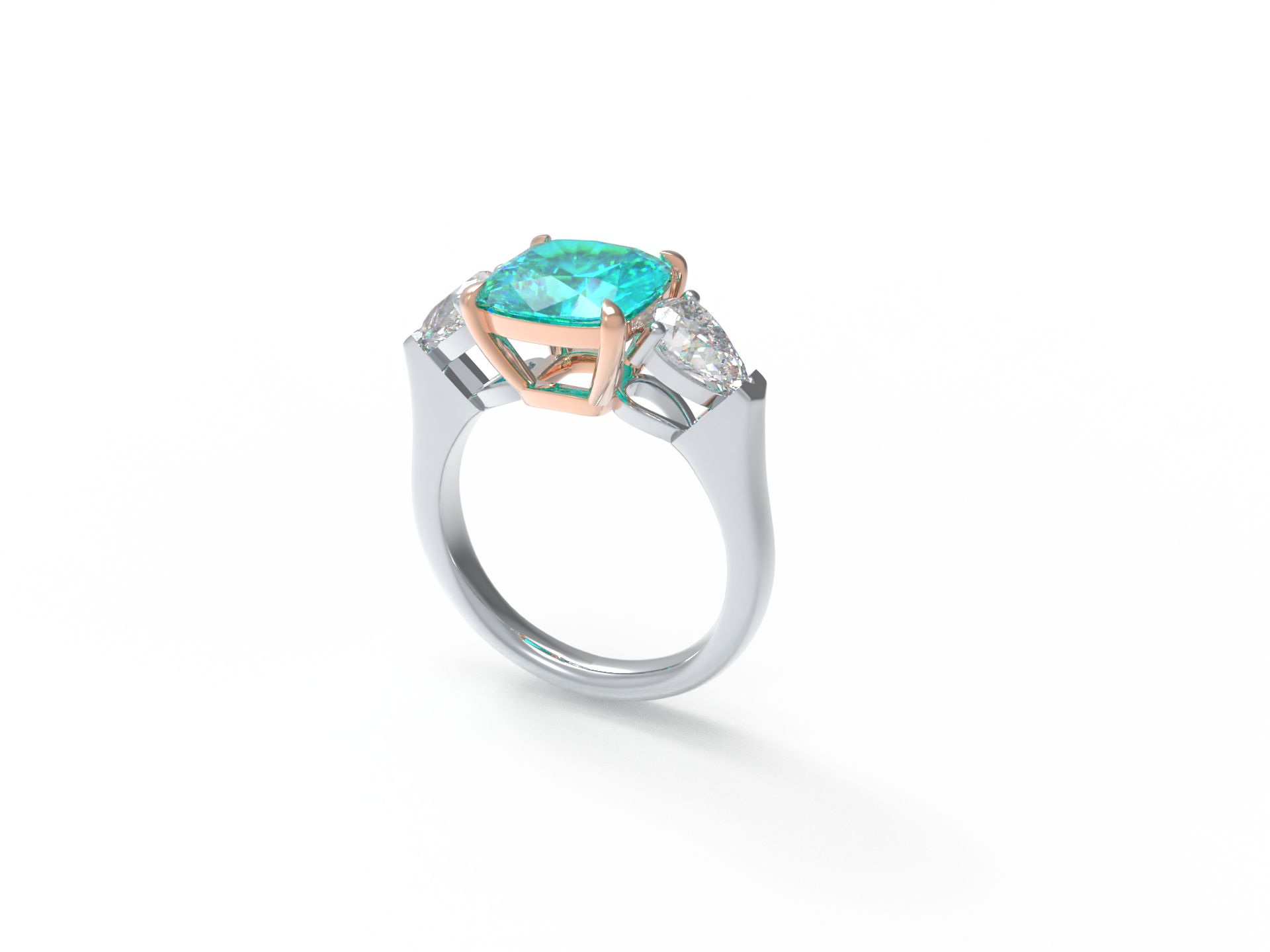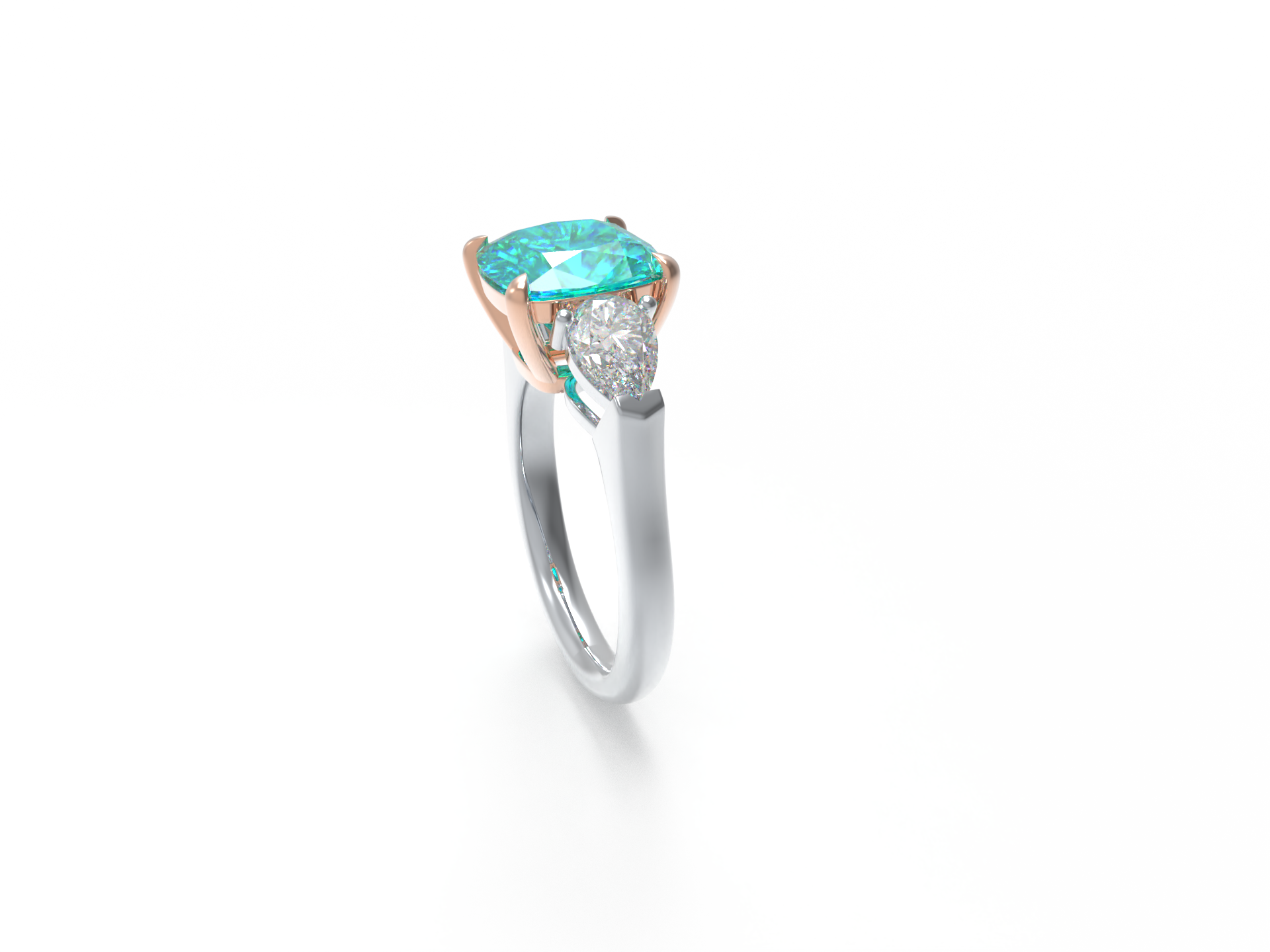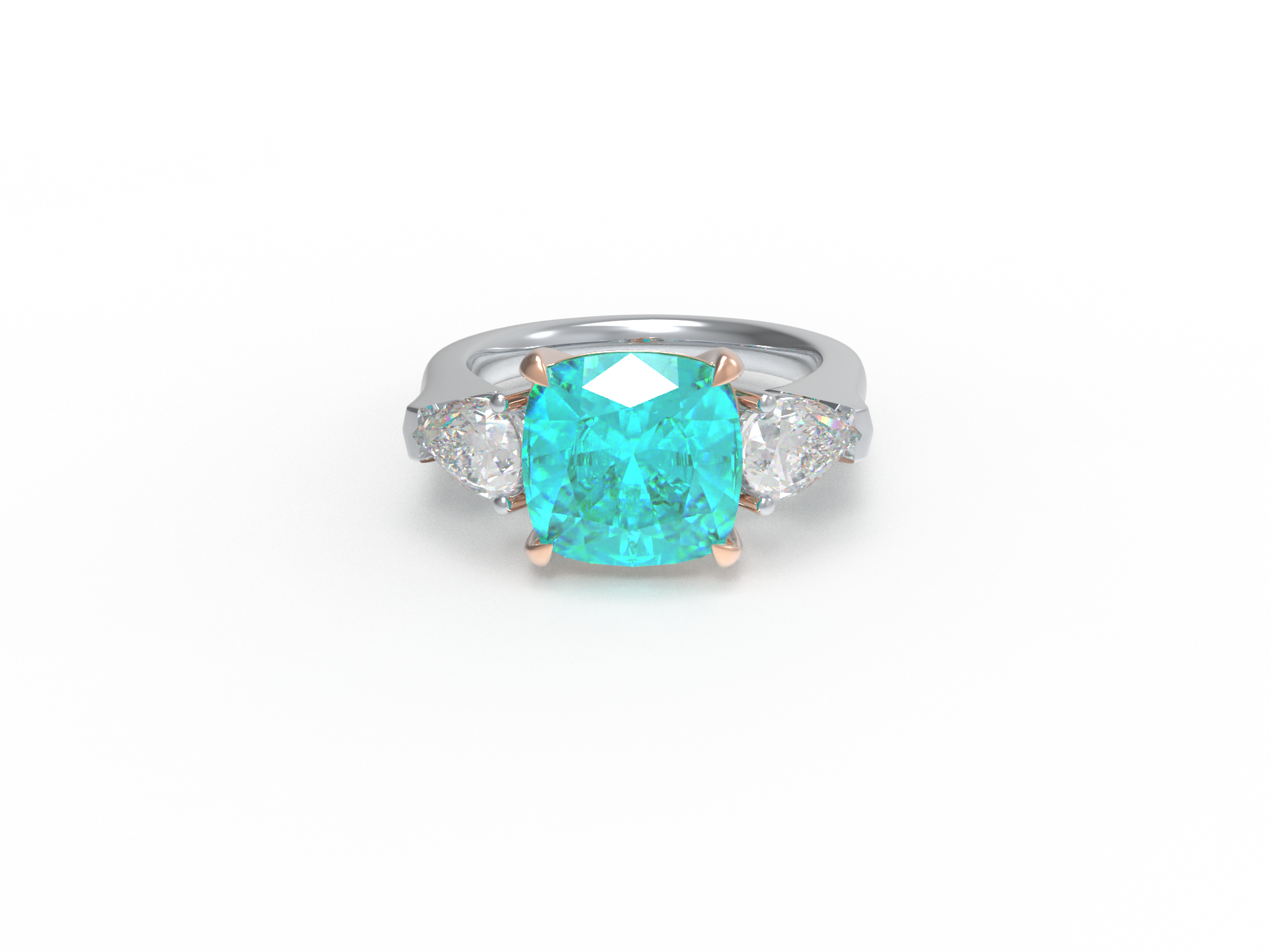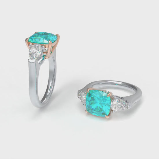 Handmade Three - Stone Ring with Lab - Grown Paraiba Diamond (2.8CT/4CT) & Lab - Grown Diamond Accents, 9K/14K/18K White Gold & Platinum Optional