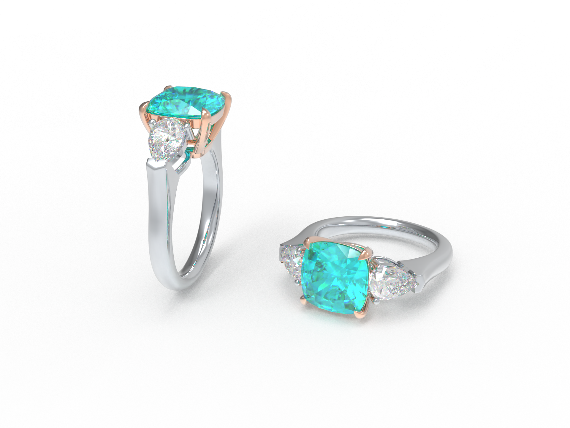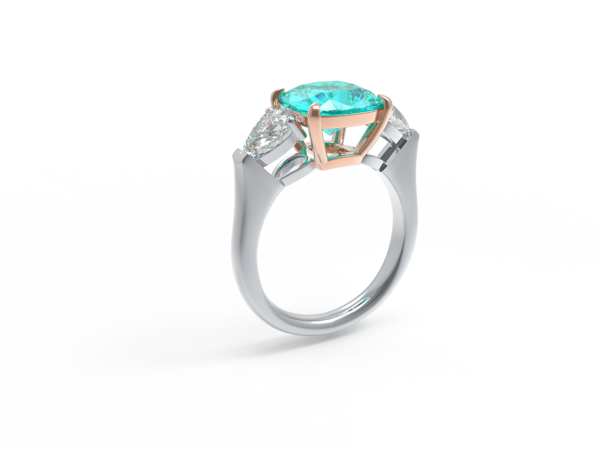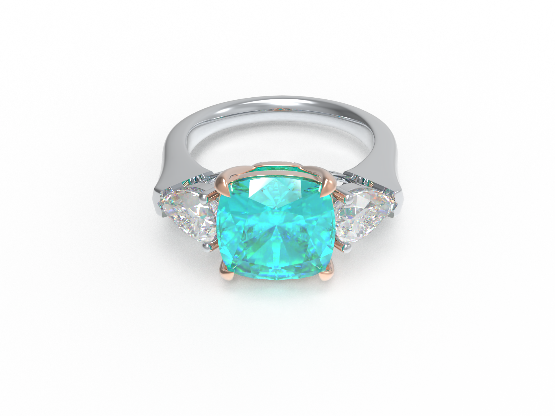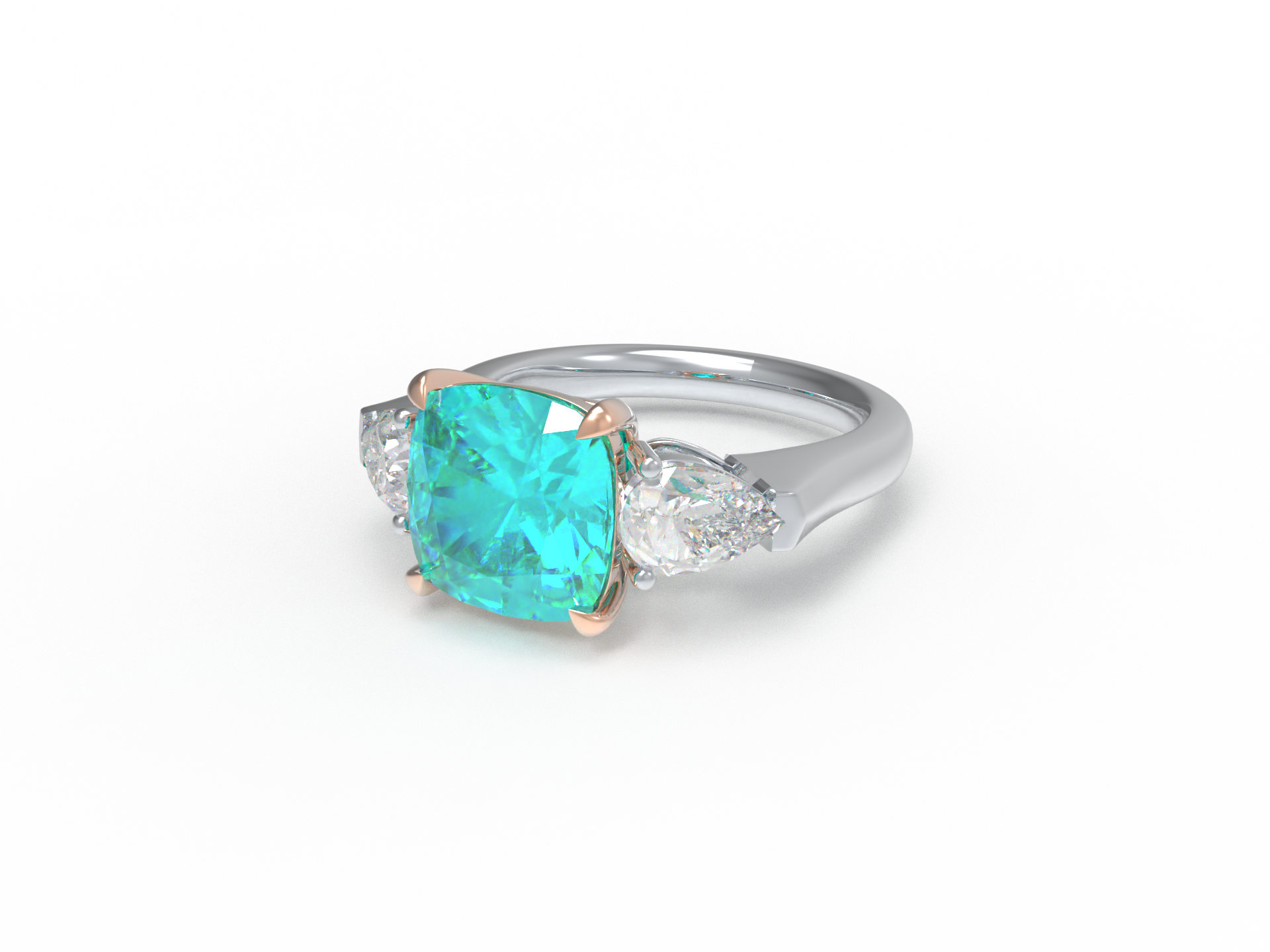 Handmade Three - Stone Ring with Lab - Grown Paraiba Diamond (2.8CT/4CT) & Lab - Grown Diamond Accents, 9K/14K/18K White Gold & Platinum Optional
