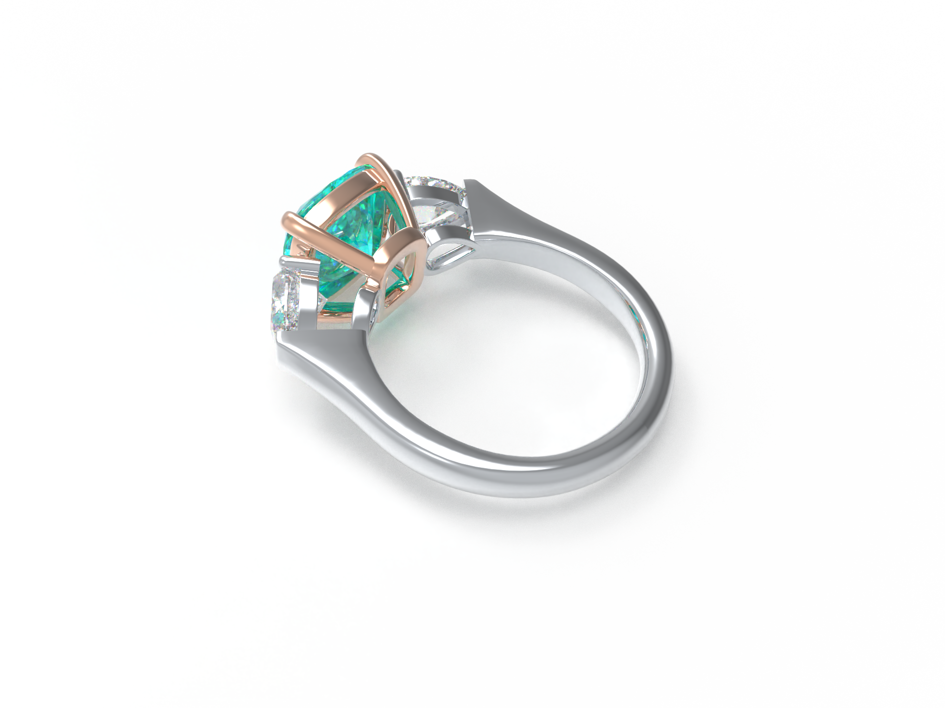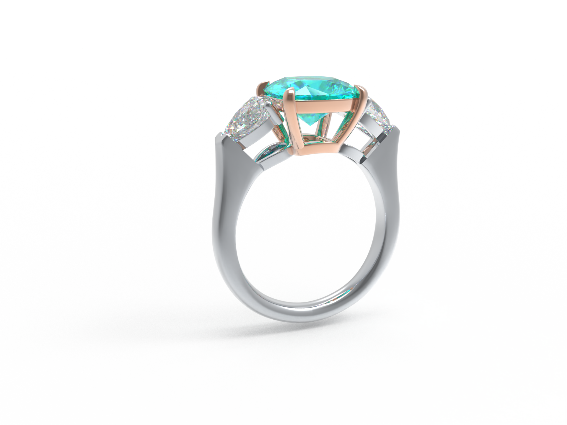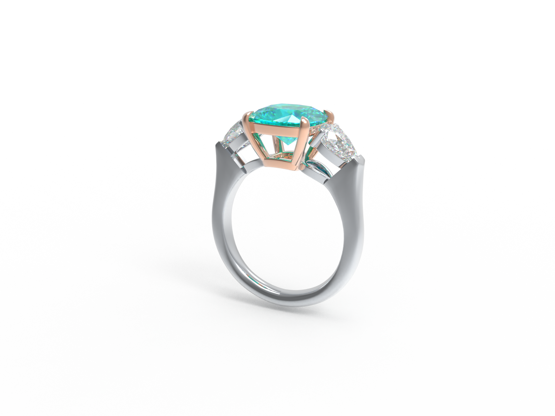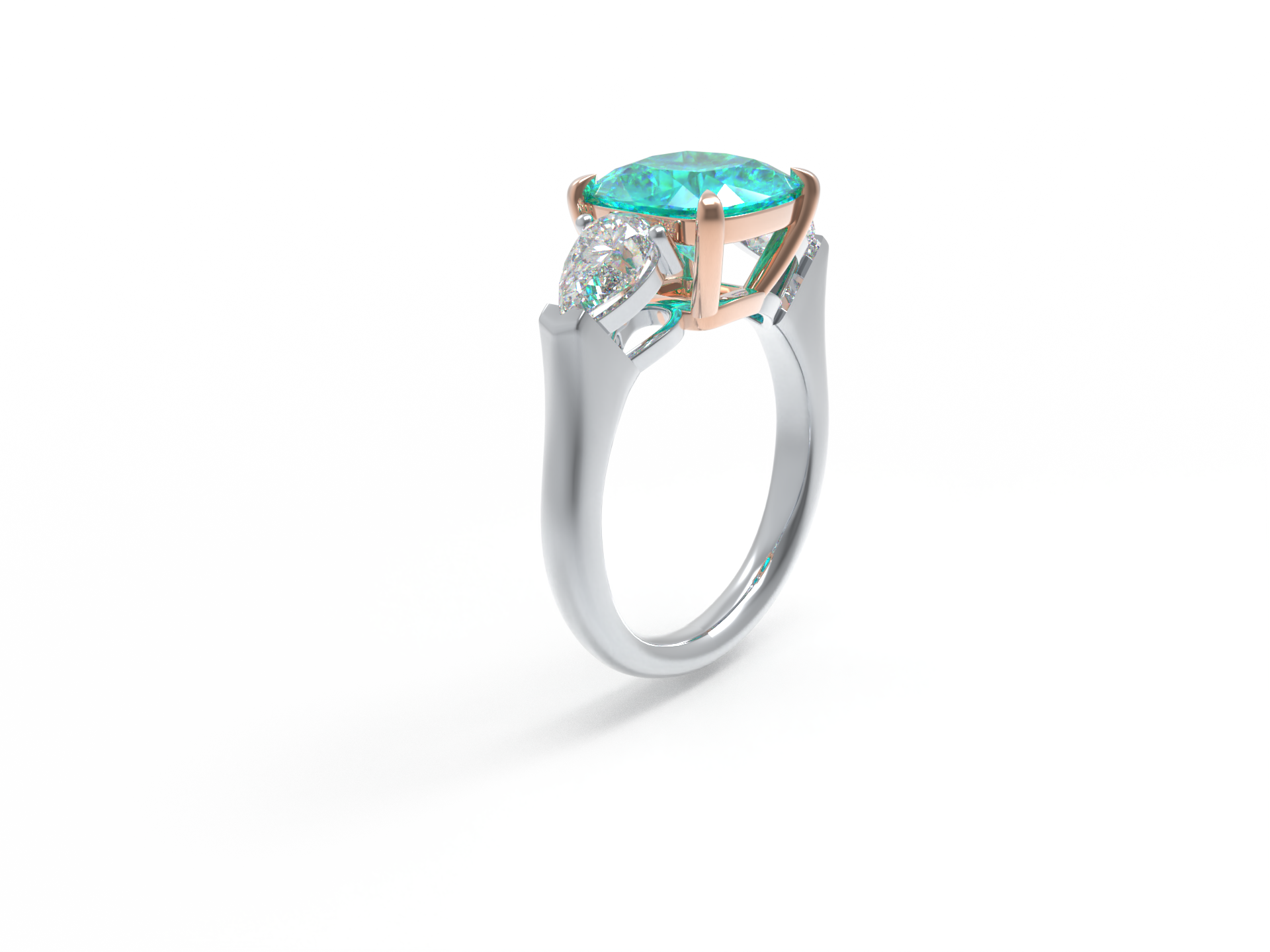 Handmade Three - Stone Ring with Lab - Grown Paraiba Diamond (2.8CT/4CT) & Lab - Grown Diamond Accents, 9K/14K/18K White Gold & Platinum Optional