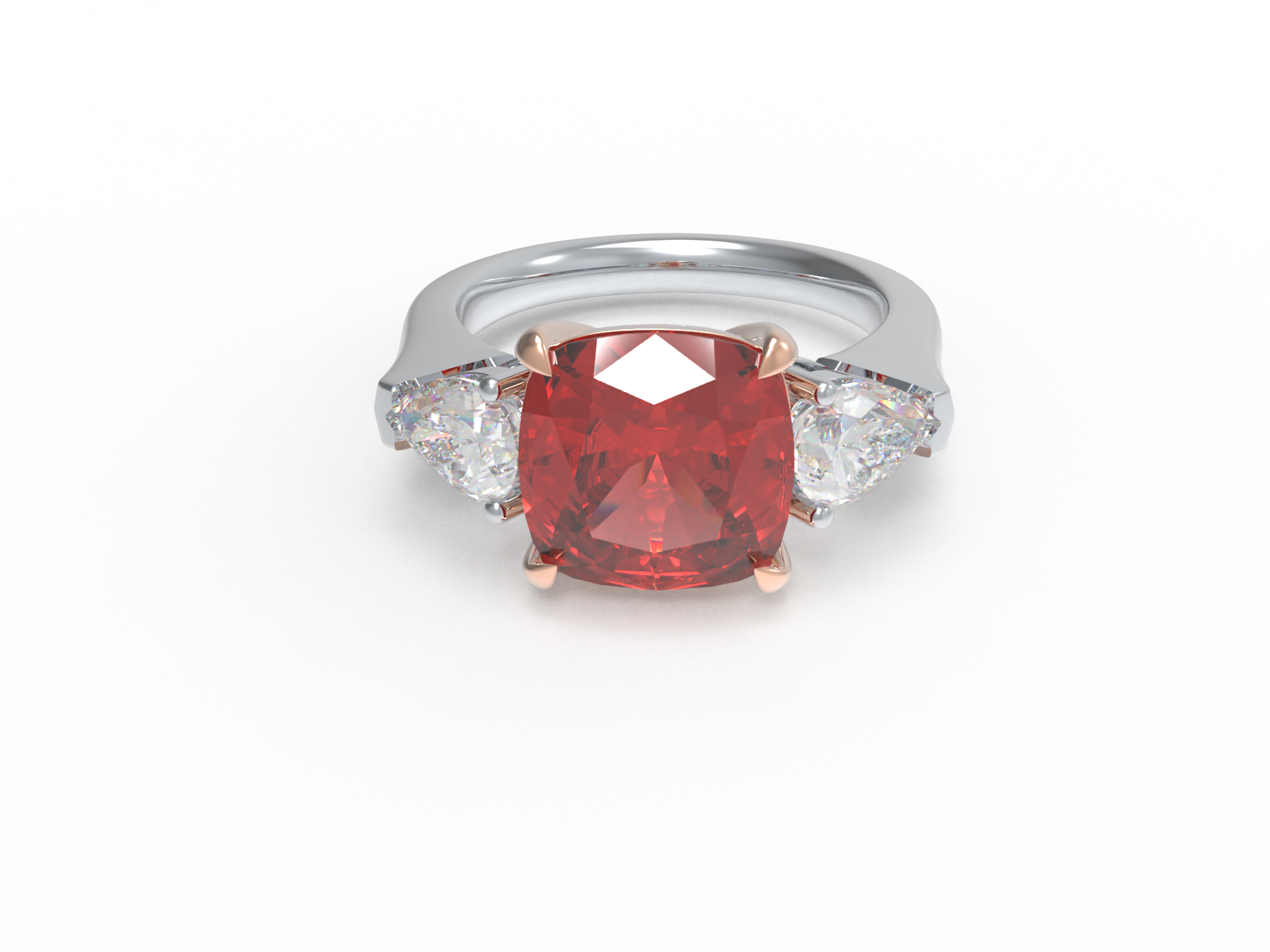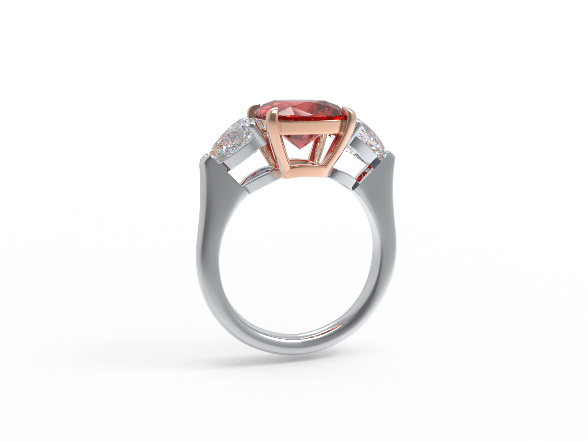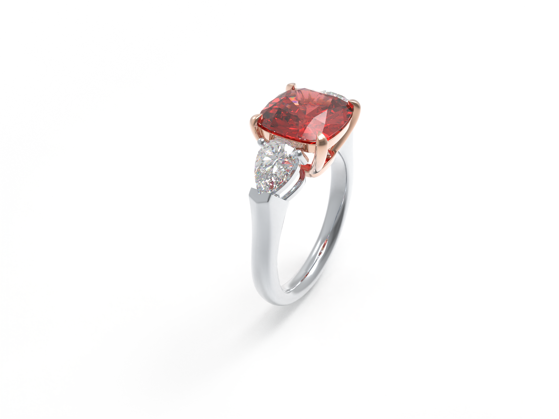 Handmade Three - Stone Ring with Lab - Grown Paraiba Diamond (2.8CT/4CT) & Lab - Grown Diamond Accents, 9K/14K/18K White Gold & Platinum Optional