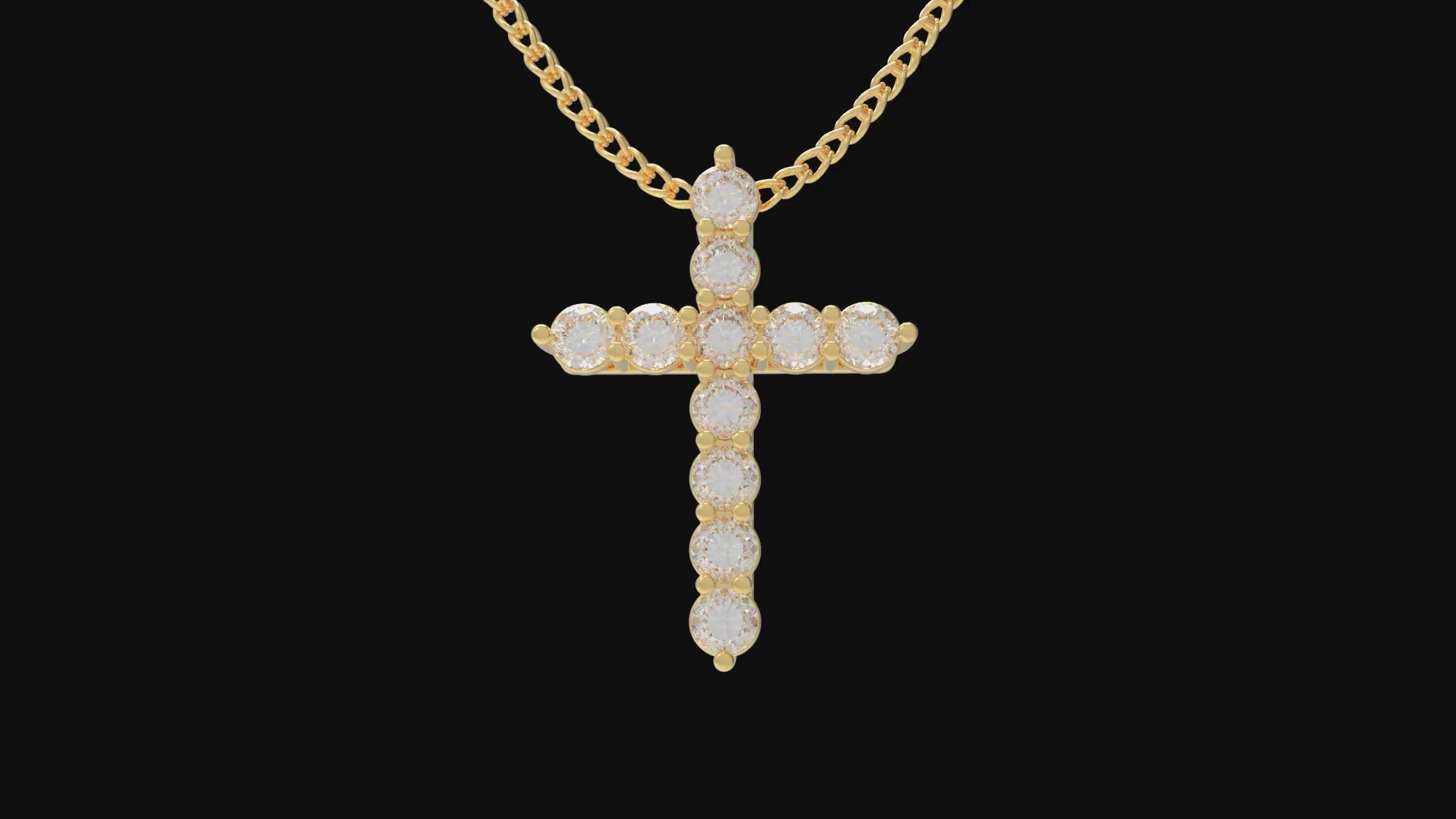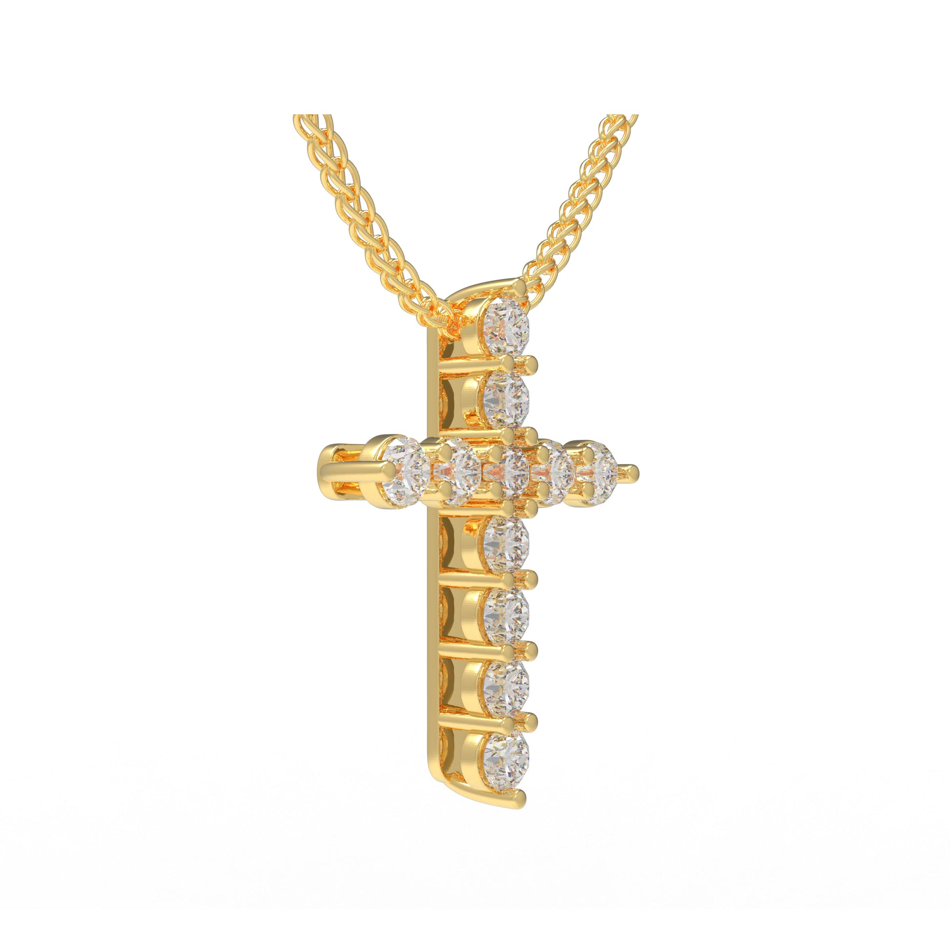 10K/14K Yellow Gold Cross Lucky Pendant Necklace with 0.7ct Lab Grown Diamonds, 11 Stones of 3mm Diameter, Perfect Gift for Women, Girlfriend, Wife, Mom, Client on Birthday, Anniversary, Mother's Day