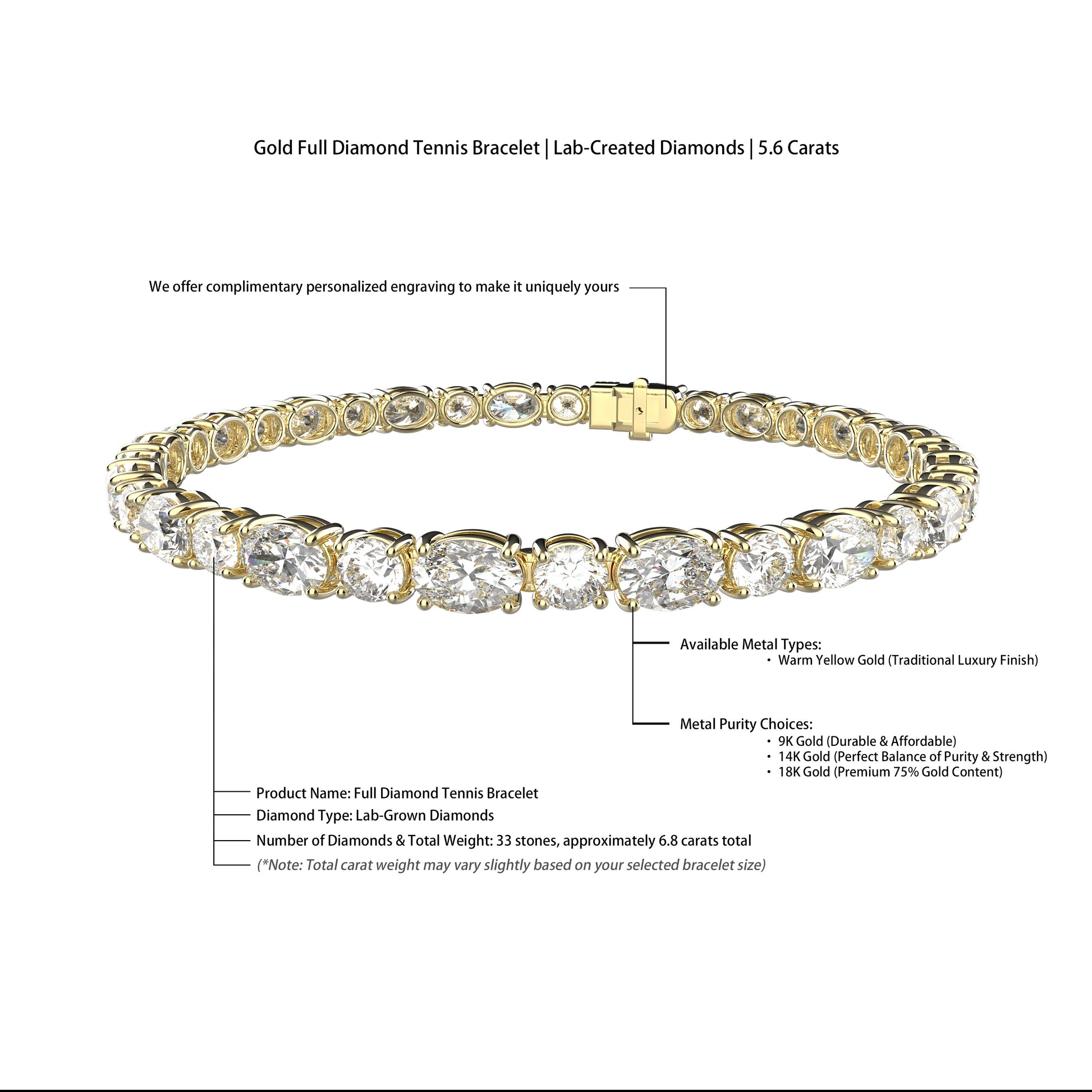 Ophelia Eternity 4-10ct 9K/14K18K Yelow Gold Lab-grown diamond Tennis Bracelet, 4-Prong, D-VS2/SI1 - Free