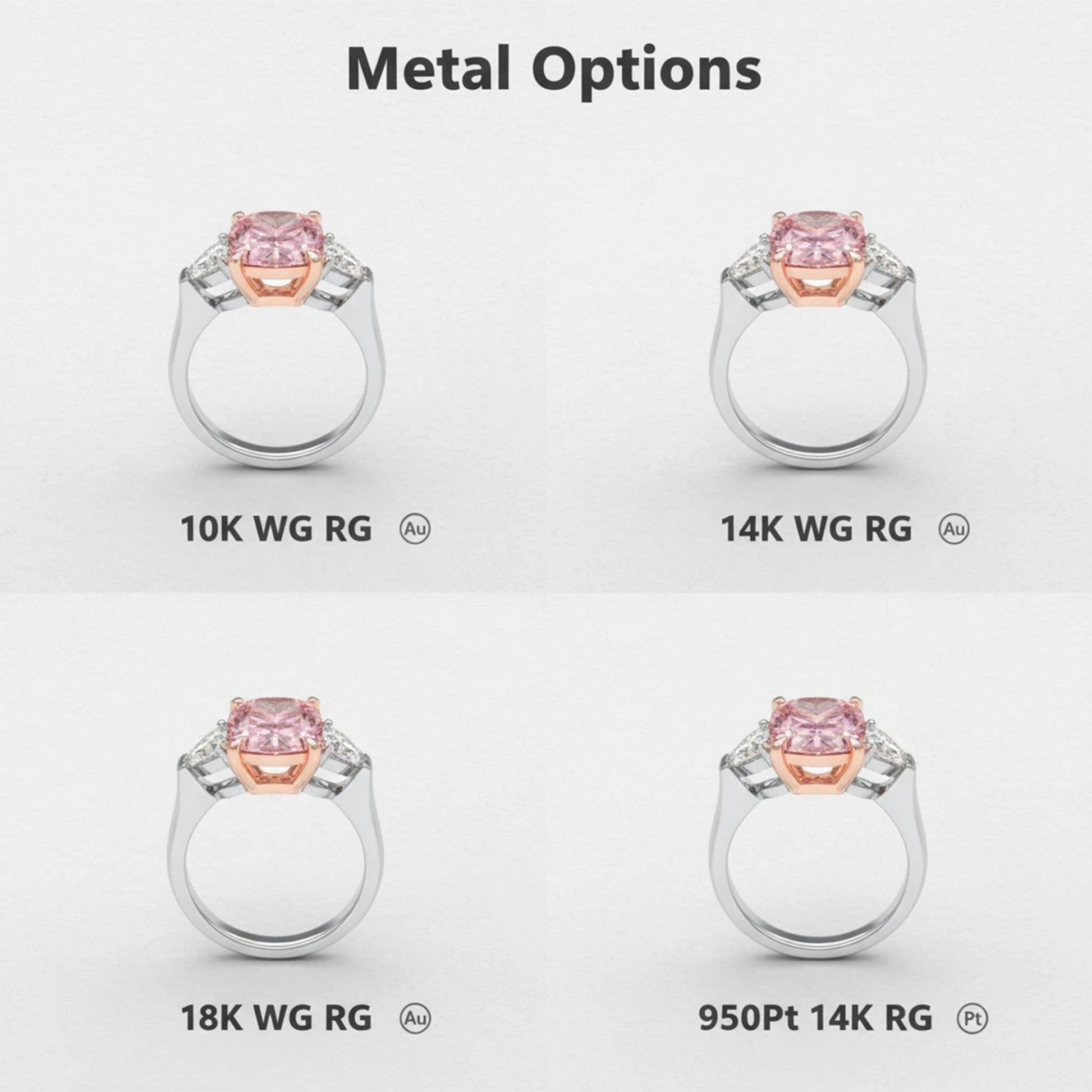 - Romantic Two-Tone Setting: Crafted in your choice of White Gold or Platinum, all with rose gold prongs to beautifully complement and highlight the pink gemstone.